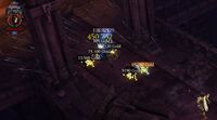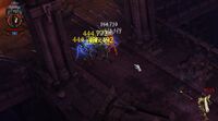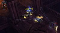 Besonders an den letzten Bilder sieht man: Der Schaden auf dem ersten Gegner steigt stetig an, der Gegner im Hintergrund wird von dem Stein nicht weiter geschädigt.