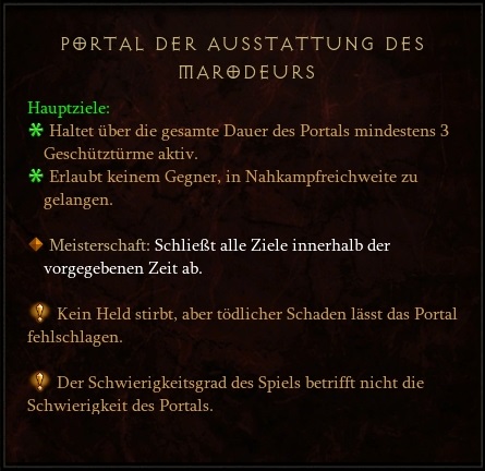 Drei Geschütztürme für die gesamte Dauer des Portals aktiv halten (man hat mehr als ausreichend Zeit zum initialen Aufstellen) und keinen Gegner in Nahkampfreichweite lassen.
